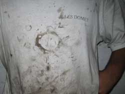 noticed that turbo flange make a bite on his white T-shirt